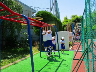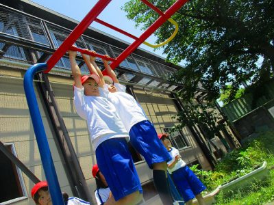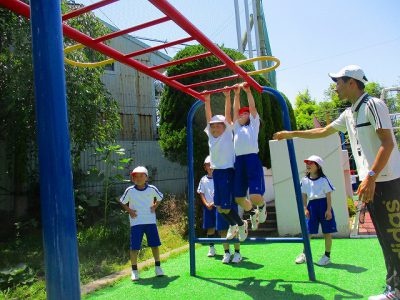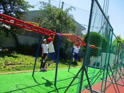 前回の体育から、“ぶら下がり競争”や“スピード対決”を展開しているので、休み時間も練習する姿が目立ってきました。