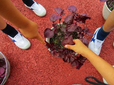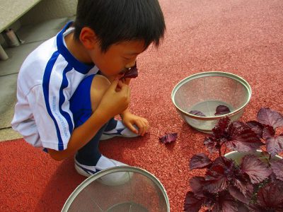 梅雨空の合間をぬって、“赤しそ摘み”を行いました。