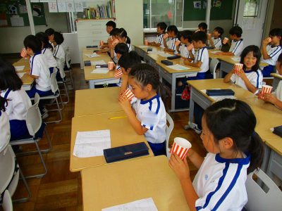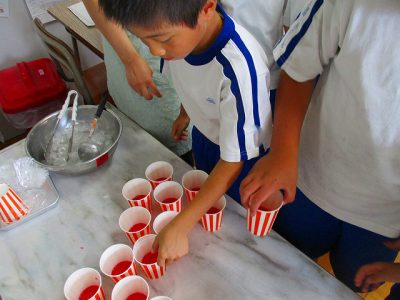 体育終了後の4時間目に、氷入りの赤しそジュース参上!!