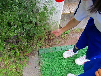 場所は、雲梯(うんてい)と掲揚台の間、草花が自生しているところです。