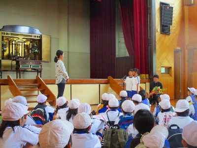 教頭先生のお声かけで、どんなプレゼントなのか説明してくれているところです。