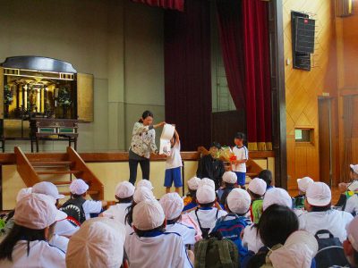 ウキウキウォーキングから帰校後、体育館で「まとめの会」を行いました。