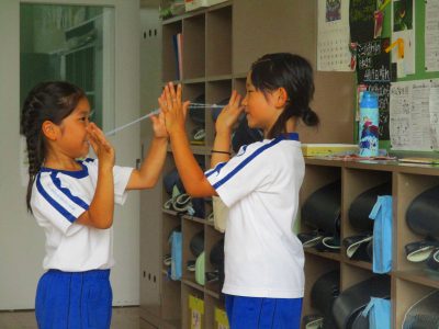 おっと、教室では二人あやとりも。