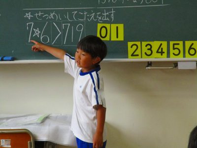 算数では「1000までの数」を活用した「説明して答えを出す」学習を進めています。