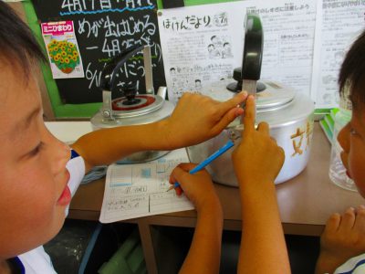 すると、自分のコップに水筒と、つぎつぎに“身近なかさ”に気づくことができました。