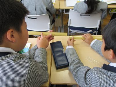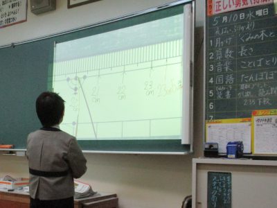 算数の時間は、「長さの学習」を始めています。この単元で学習する長さの単位は、