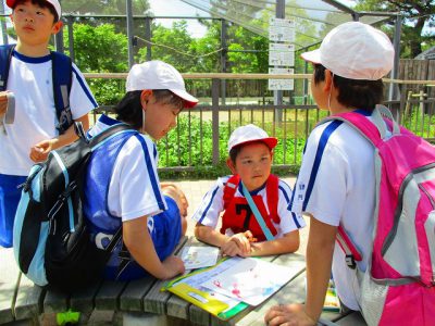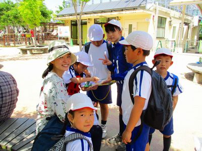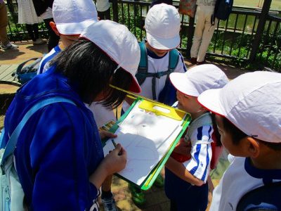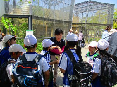 各ポイントに立っている先生にシールをもらったり、動物の説明をしてもらったり……