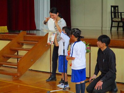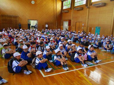 2校時まで学習した後に、全校生が運動場に整列しました。