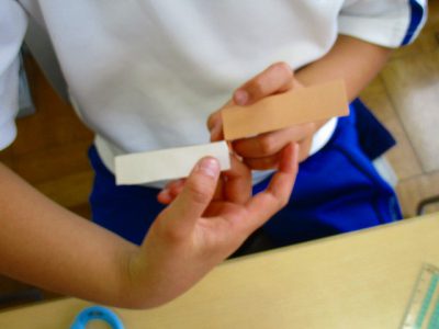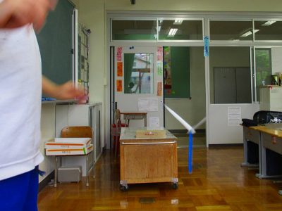 「たね飛ばし」を体験しようと、身近な物で作ることができる簡単工作の続きです。