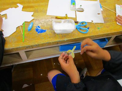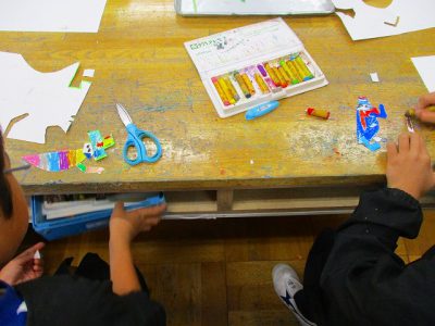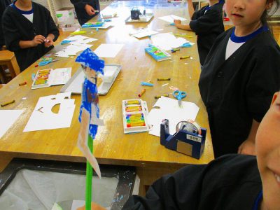 来週は、画用紙いっぱいに散歩道の画面作りです。