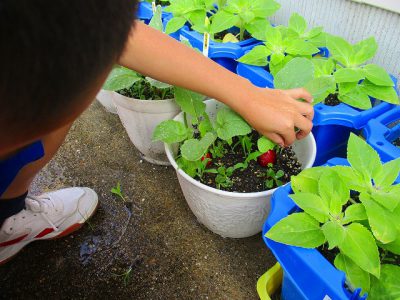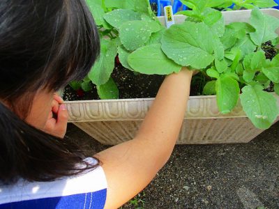 こちらは、種から育てている「赤しそ」「二十日大根」です。
