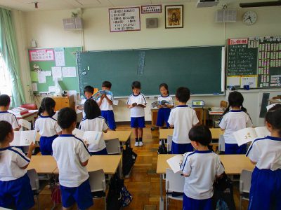 職員朝礼を待つ間から、日直さんによる音読を始めてくれています。