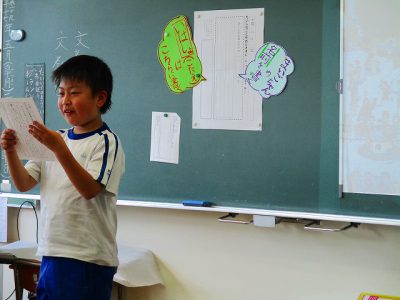 今朝は、もう流れが分かっているので、プリントの裏も進めてOK!と指示し、たくさんの「迷子アナウンス」を行ってもらえるように進めました。