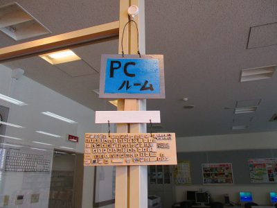 この看板、卒業生の作品です。