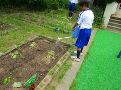 サツマイモの畑に、お手製の【2年生】看板が立ちました。