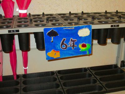 各教室や学習に使う様々なスペース、傘立てにあるのも、同様に、お兄さんお姉さんたちが、文教キッズの明るい学校生活を目指して製作してくれた作品です。