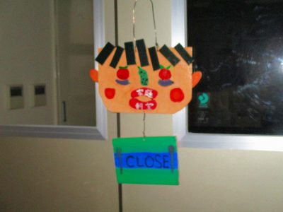 実はこの看板、3月に卒業した班長さんたちが図工の時間に作った木工作品なのです。