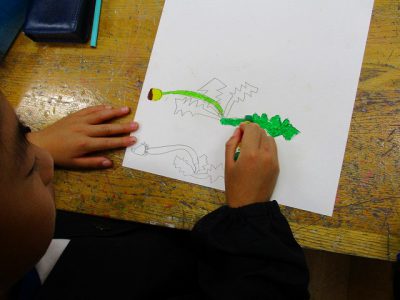 まずは、【ステージ1】の「色々なタンポポの姿」を描くところから。