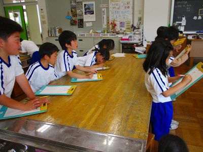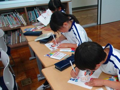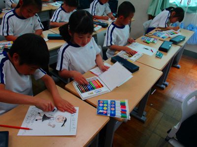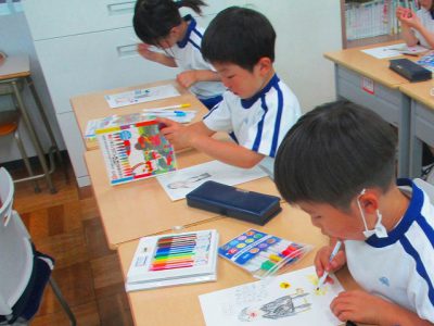 教室に戻ると、カラーペンやクーピーペンシルを使って仕上げをしました。