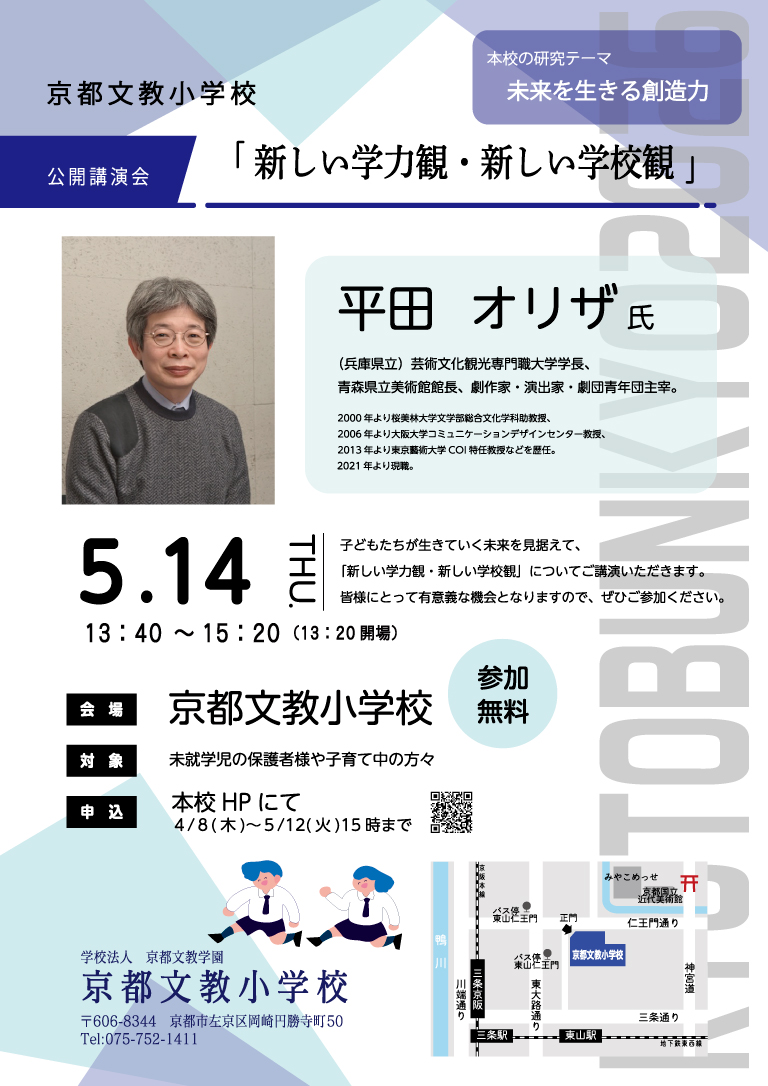 子どもたちが生きていく未来を見据えて、「新しい学力観・新しい学校観」についてご講演いただきます。