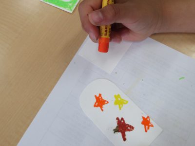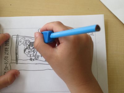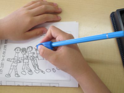 帰校後の振り返りの時間に、特に楽しかった場面を絵に描きました。