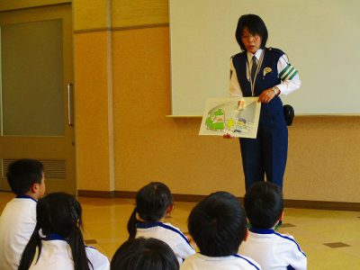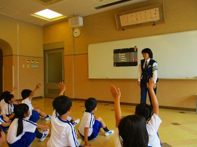 川端警察署の警察官の方から「安全な歩道の歩き方」や「横断歩道の渡り方」について学びました。