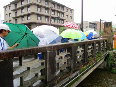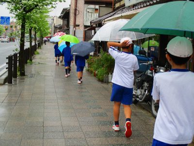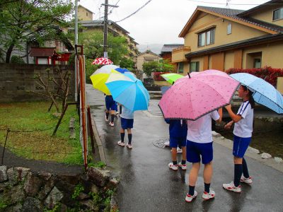 雨の中でしたが、子ども達は楽しく、三条通りや学校周辺のウォーキングを楽しみました。