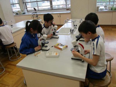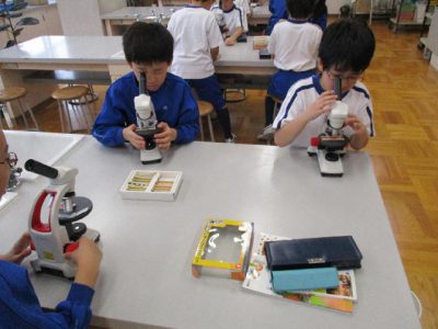 理科クラブでは、今年新しく購入した顕微鏡を使って、プランクトンの観察をしました。
