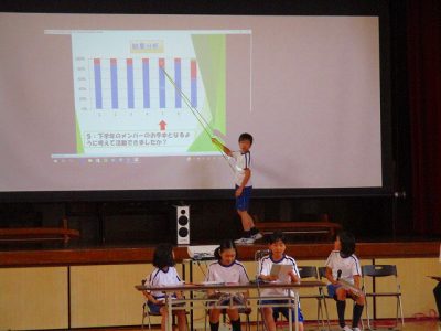学級において話し合ったことをもとに、全校児童が集う場での意見交流に取り組みました。
