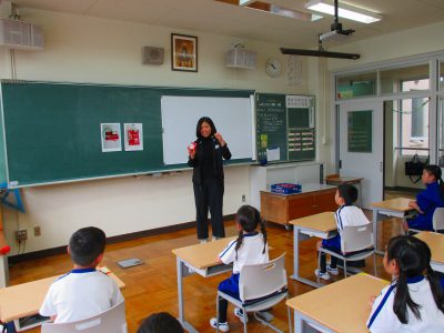 栄養教諭の居相先生から、牛乳の飲み方や片付け方のお話を聞きました。