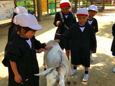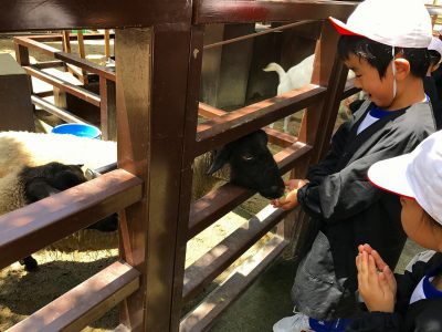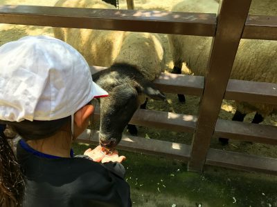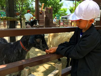 2回目のなかよし教室は「ヤギ&ヒツジのえさやり体験」です。