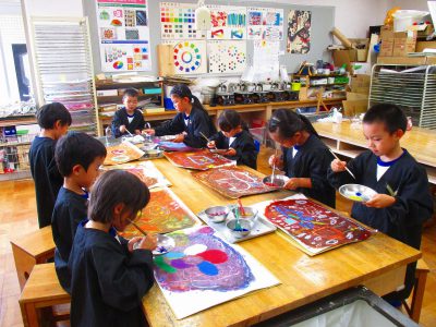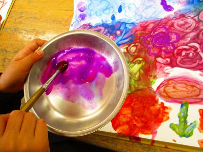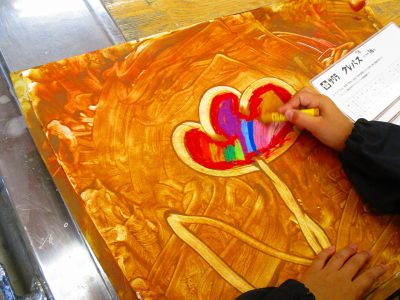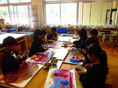 今日の図工は、先週の「ねちゃねちゃ お絵描き」の続きです。