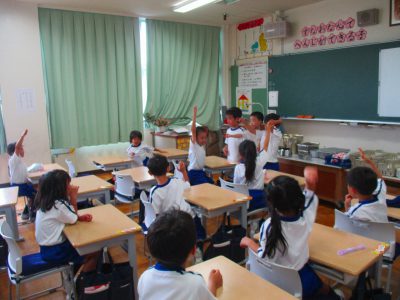 また、動作だけでなく、教科書の本文にはない台詞も付け加えながら、工夫して音読に取り組んでいます。