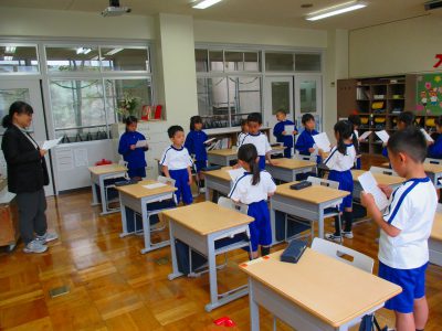 れんげデビュー集会で歌う歌は、2つのグループに分かれて聴き合ったり、