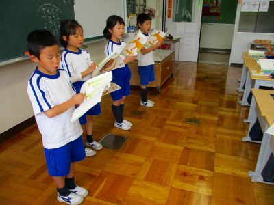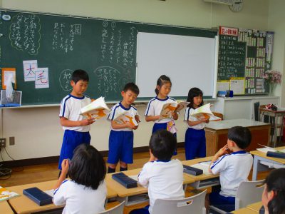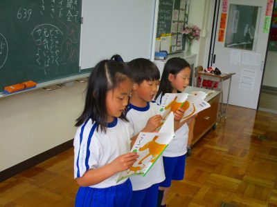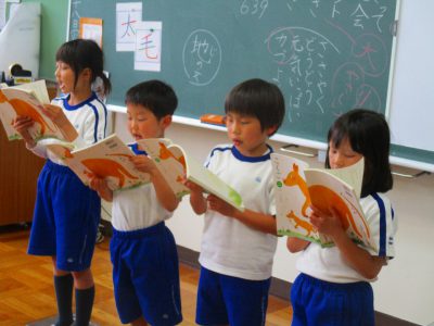 そうっと読む子、ゆったりと読む子、「ここは小さめに」と打ち合わせをしていたチームなど、聞いている側も楽しめる音読会ができました。