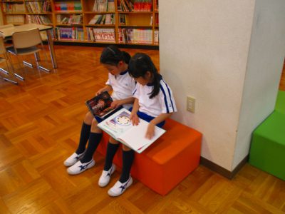 今日の5校時の後半は、図書室に行き、本の貸し出しをしました。