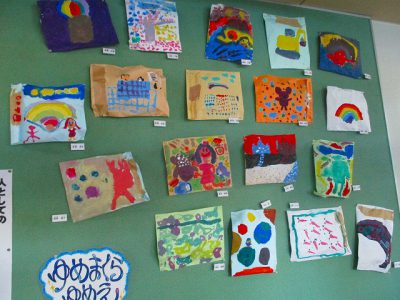 2年生教室前は、図工科の「ゆめまくら ゆめえ」を展示しています。
