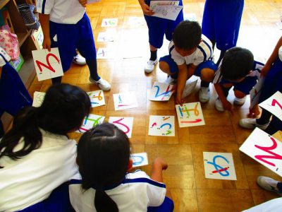 今日は、国語の時間のはじめに、みんなで「あいうえお表」を作りました。