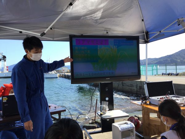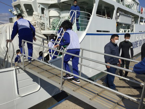 海洋高校の実習船を見学させていただき、その後、海の生き物について、説明をしてもらいました。