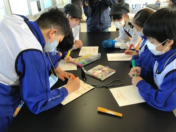 グループ毎に使う食材を決めて、一人一人がオリジナルハンバーガーの完成図を書きます。