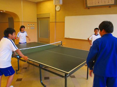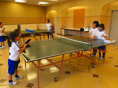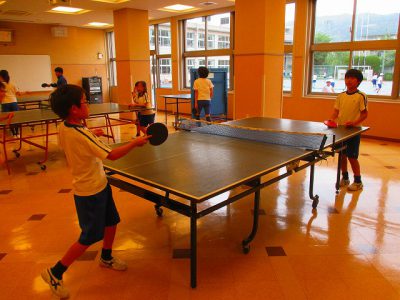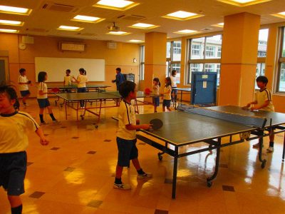 こちらは、卓球クラブの様子です。初めての4年生は「フォアハンド」の練習をしました。