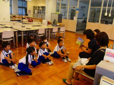 お母様方のやさしい声に、ストーリーの展開に、絵本の絵に、子ども達はお話の世界に入ったように聞いていました。