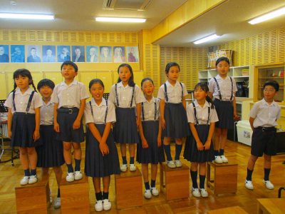 5年生の歌う「ふるさと」(日本語)に、3年生4年生は感激した様子でした。