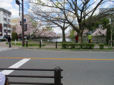 正門を出て、東に向かうと、桜の花盛り!観光の方も花盛り!