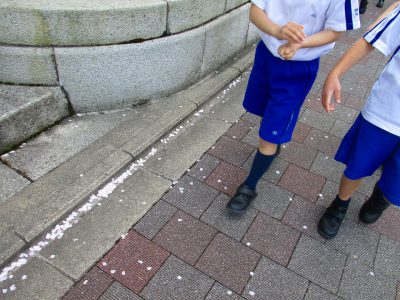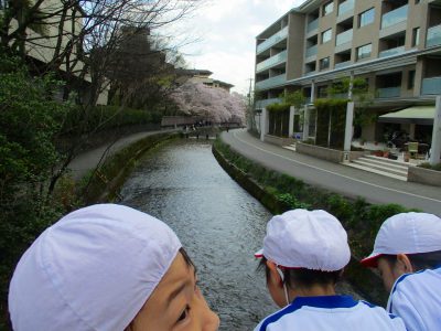 生活科の時間、“春見つけをしよう!”と、学校の外に出かけました。