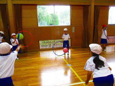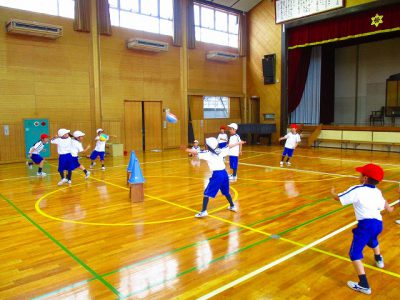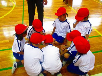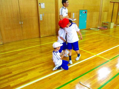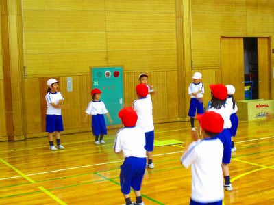 今日は雨のため、体育館で体育をしました。
