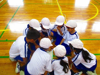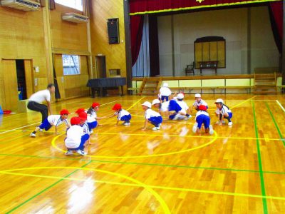 体操後は、まず、体つくり運動で「進化じゃんけん」をしました。