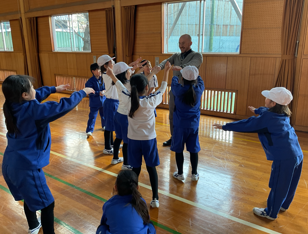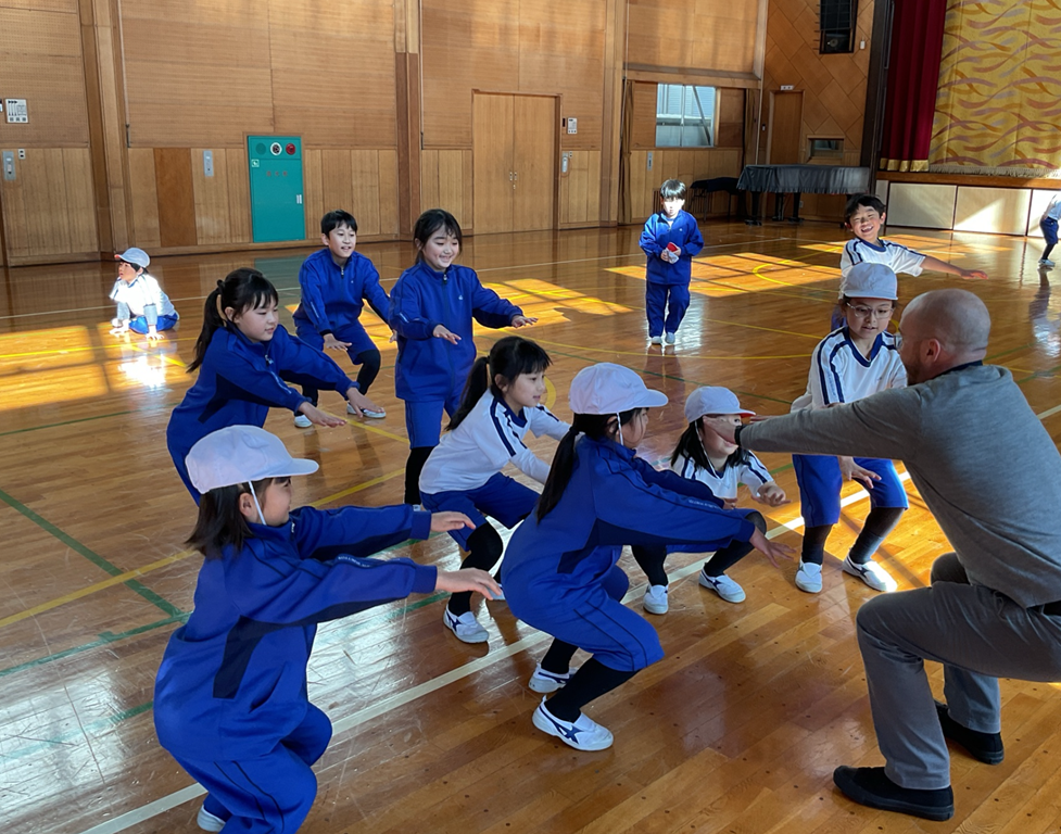 子どもたちは、ロビー先生のスクワット体験の後に、英語ドッジを楽しみました。