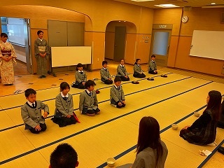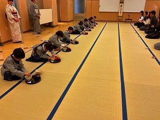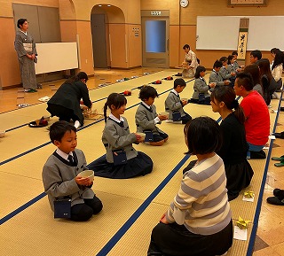 先生のお話に耳を傾けながら、おいしくなるようにお茶を点て、これまでの練習の成果を見てもらうことができました。
