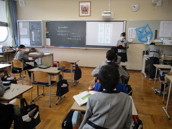 国語の時間に、書写作品の鑑賞会をしました。